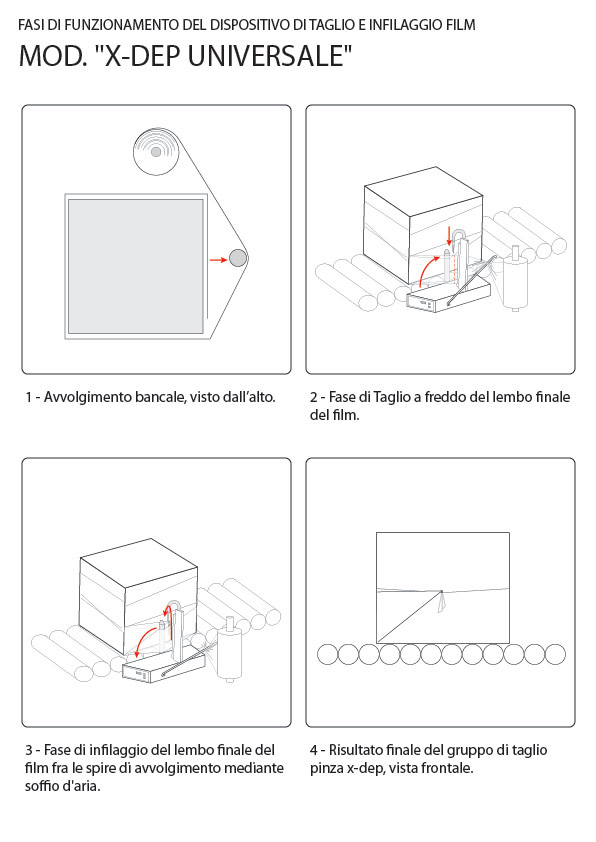 Dispositivo Elettro-Pneumatico chiamato “X-DEP Universale” che può essere installato (in sostituzione del dispositivo esistente) su tutti i tipi di macchine avvolgitrici automatiche esistenti sul mercato a prescindere dalla marca e dal modello.